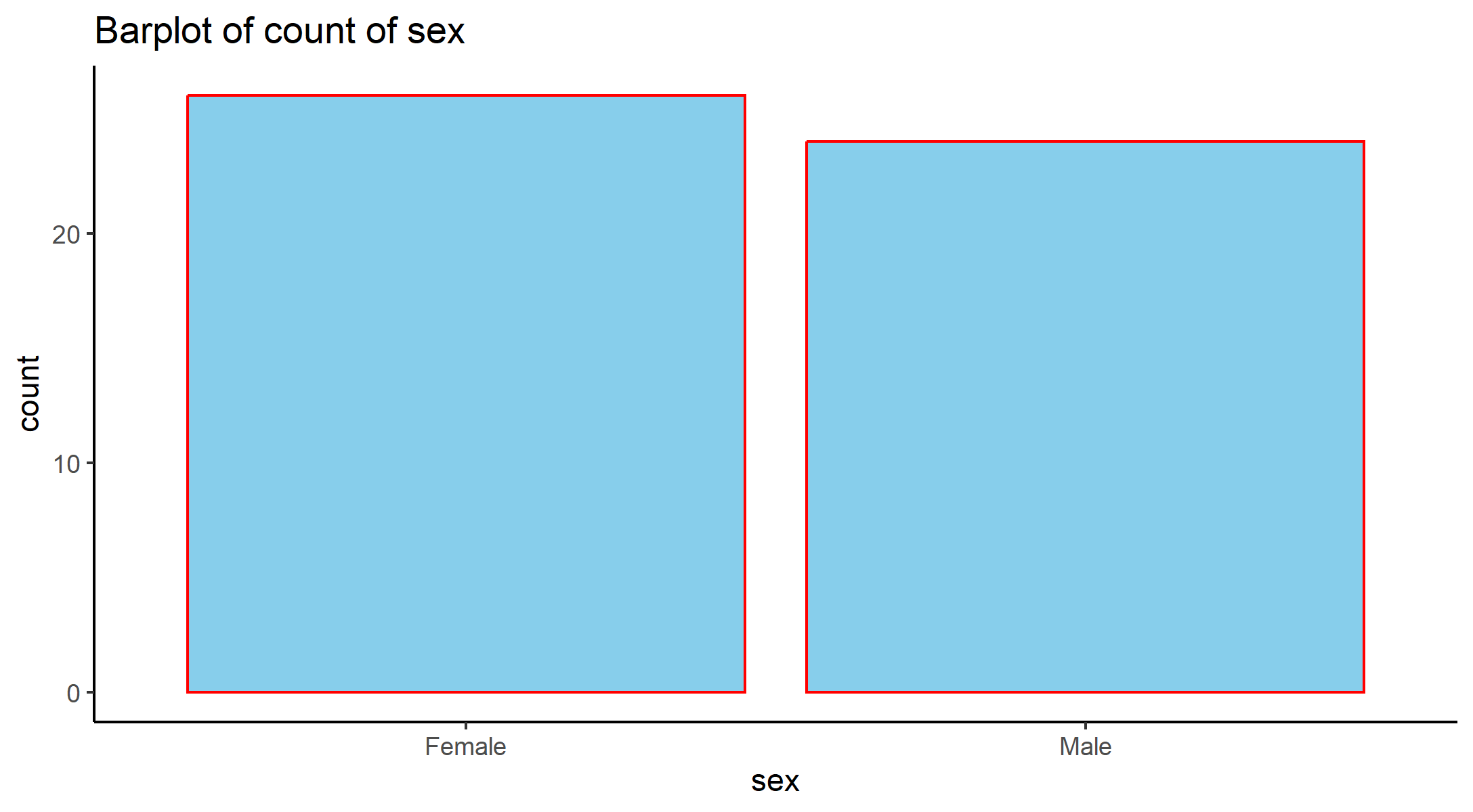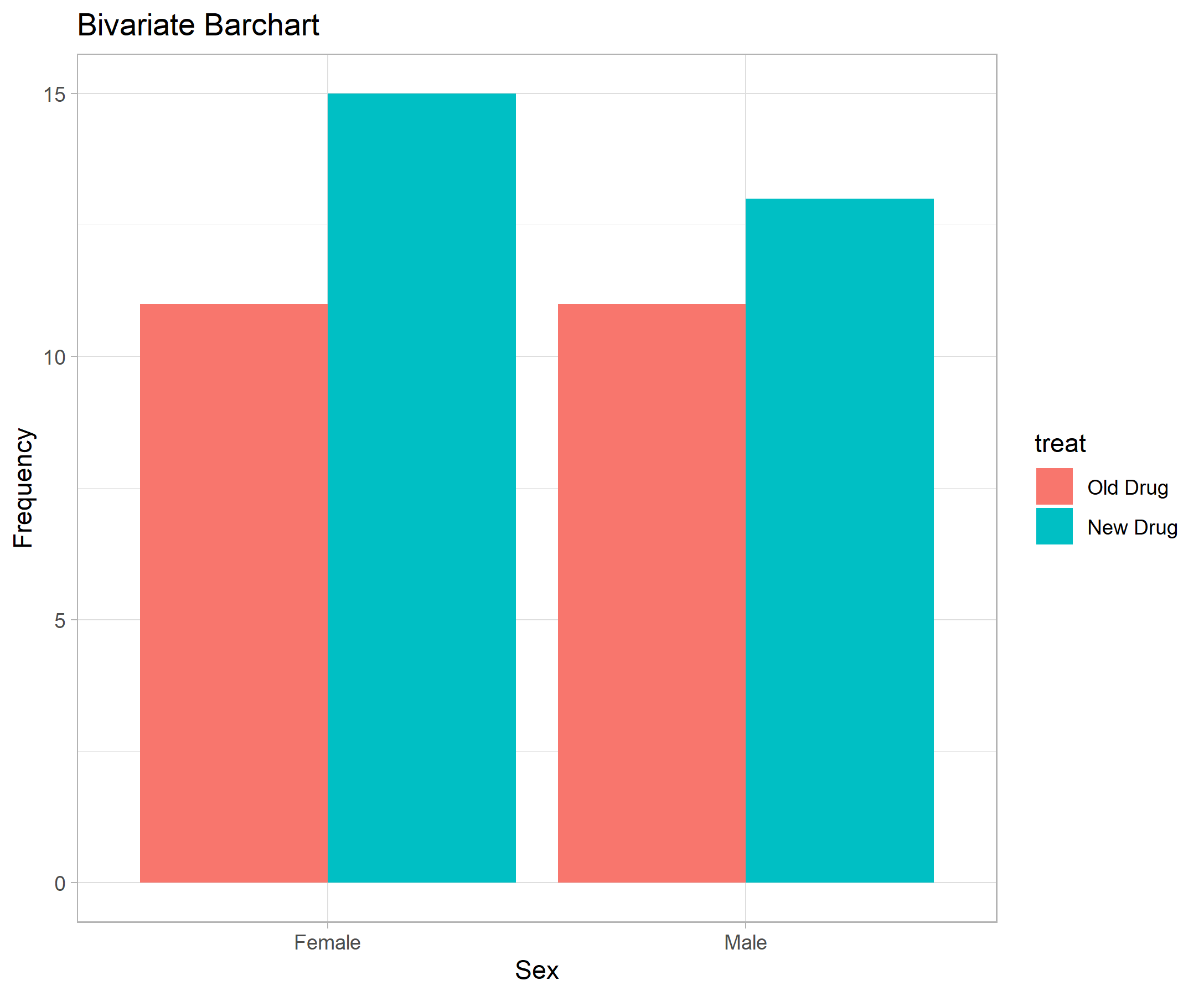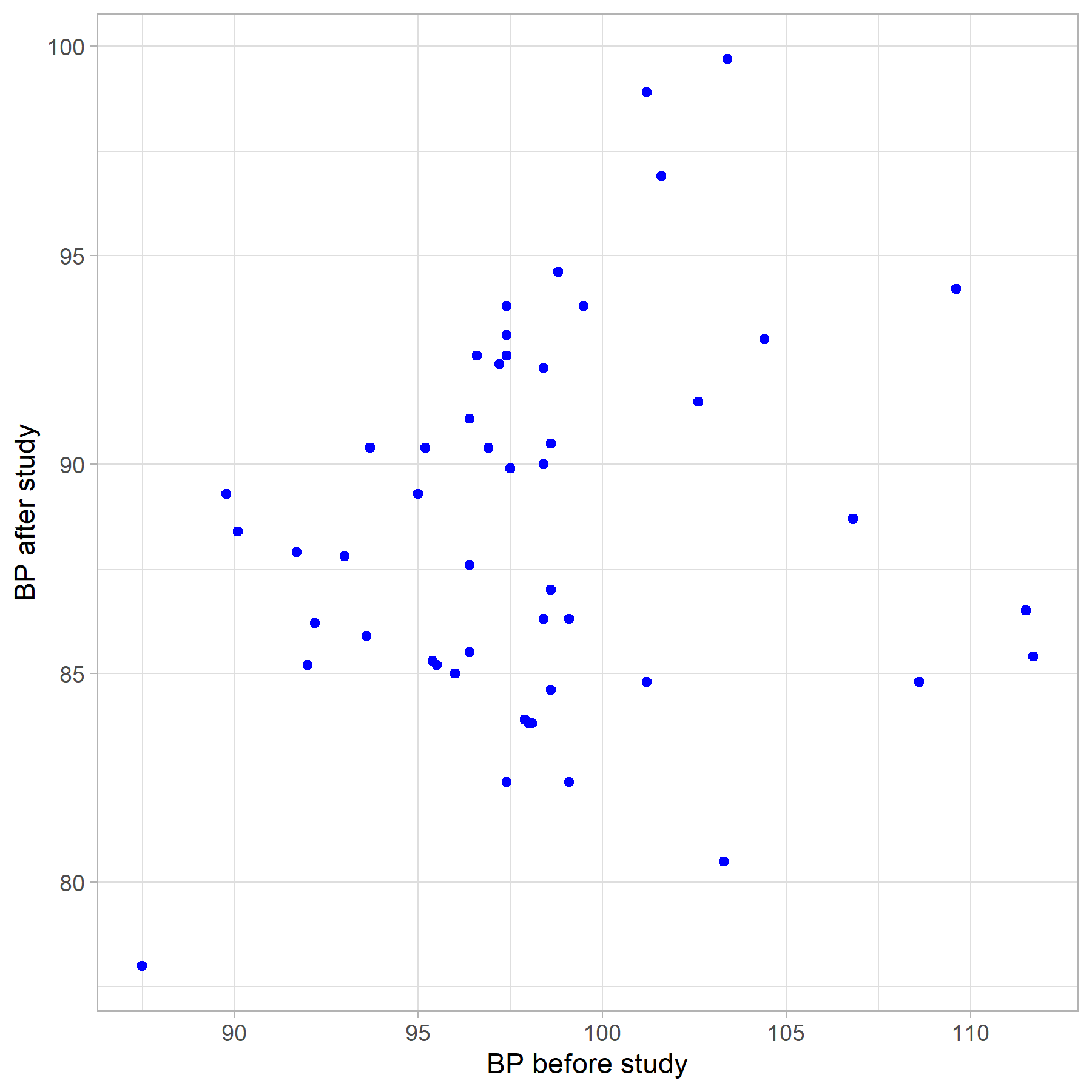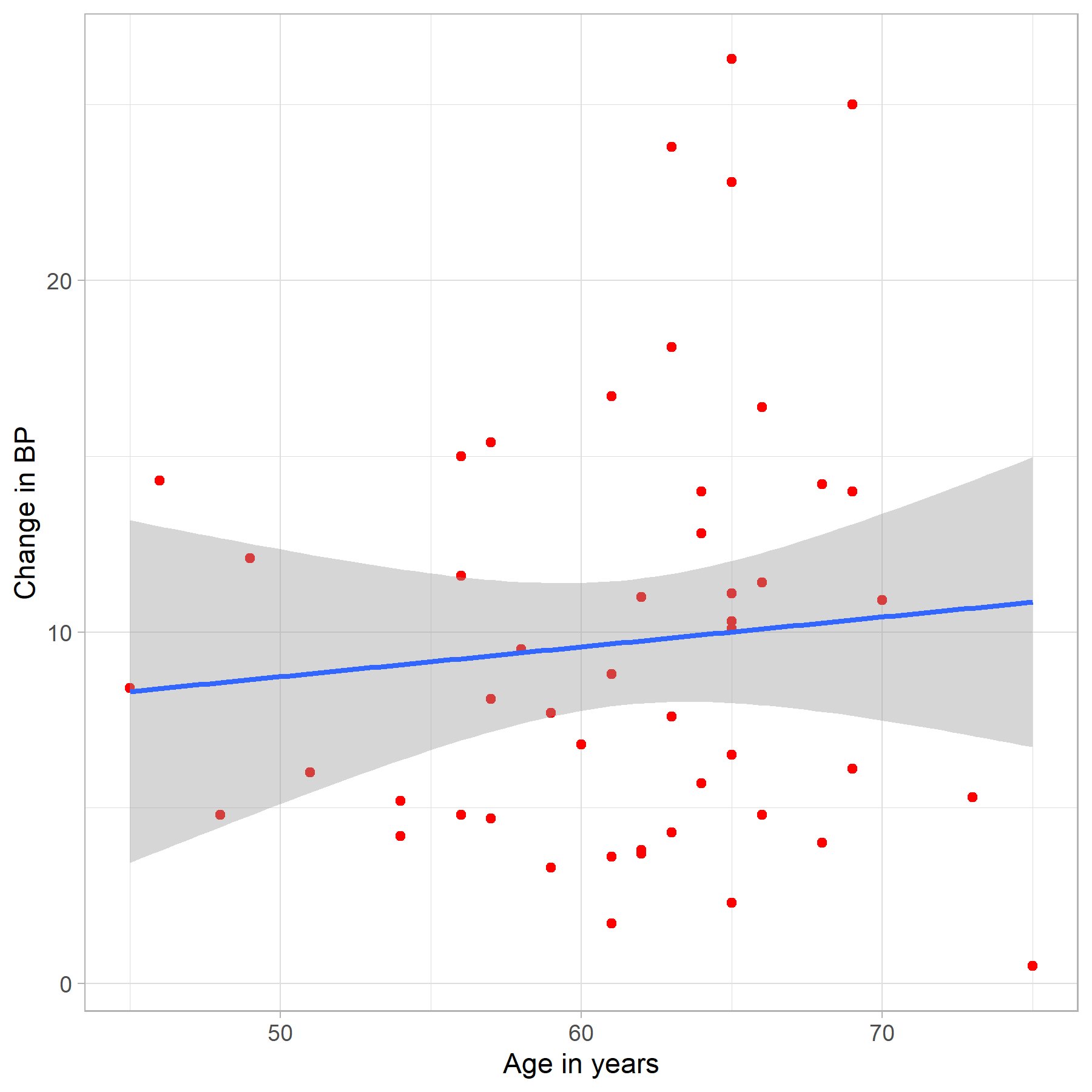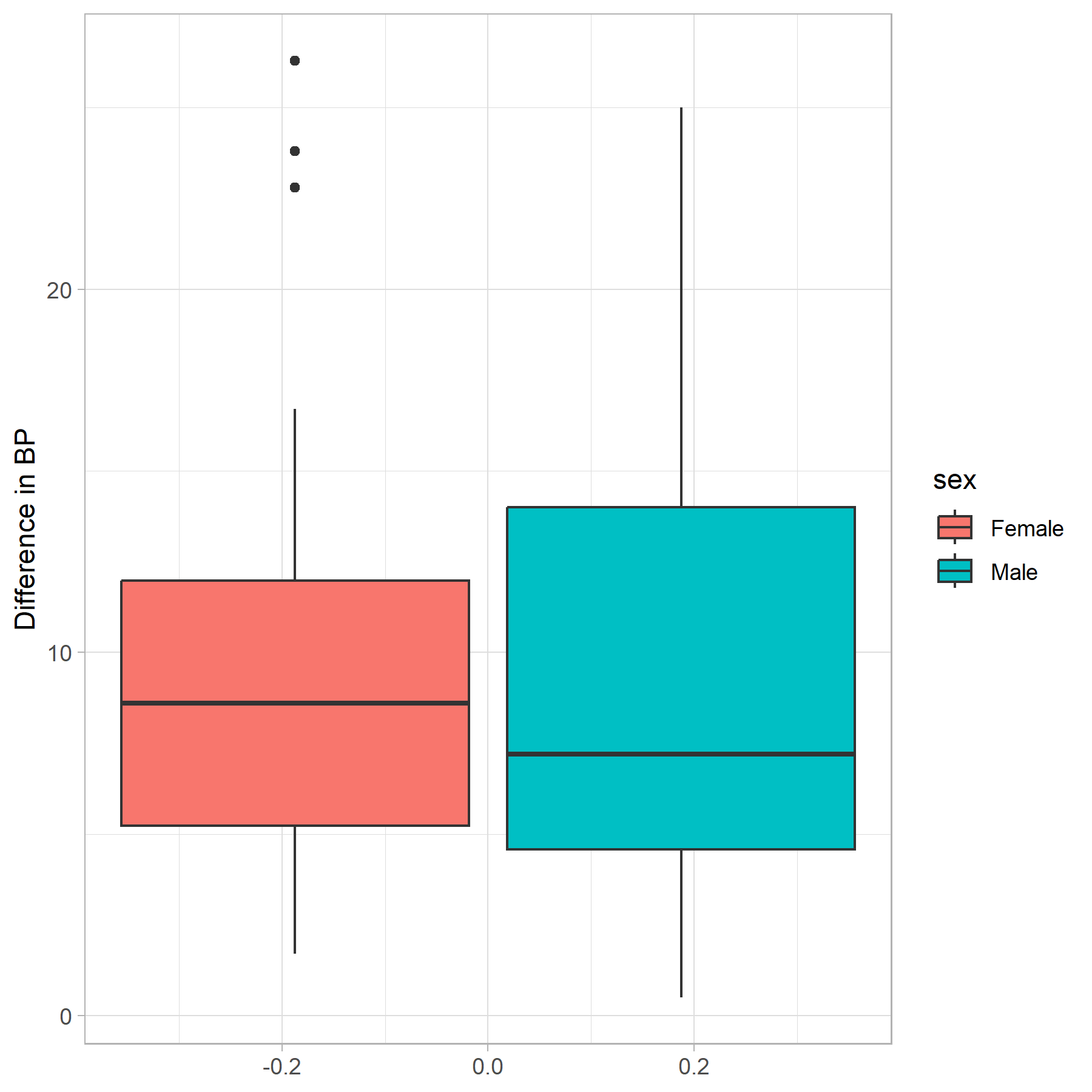 : id treat age sex bp1 Length:50 Old Drug:22 Min. :45.00 Female:26 Min. : 87.50 Class :character New Drug:28 1st Qu.:57.25 Male :24 1st Qu.: 95.62 Mode :character Median :63.00 Median : 97.70 Mean :61.48 Mean : 98.30 3rd Qu.:65.00 3rd Qu.: 99.40 Max. :75.00 Max. :111.70 bp2 bp_diff age_group Min. :78.00 Min. : 0.500 Middle age:17 1st Qu.:85.22 1st Qu.: 4.800 Elderly :33 Median :88.15 Median : 8.250 Mean :88.60 Mean : 9.704 3rd Qu.:92.10 3rd Qu.:13.700 Max. :99.70 Max. :26.300