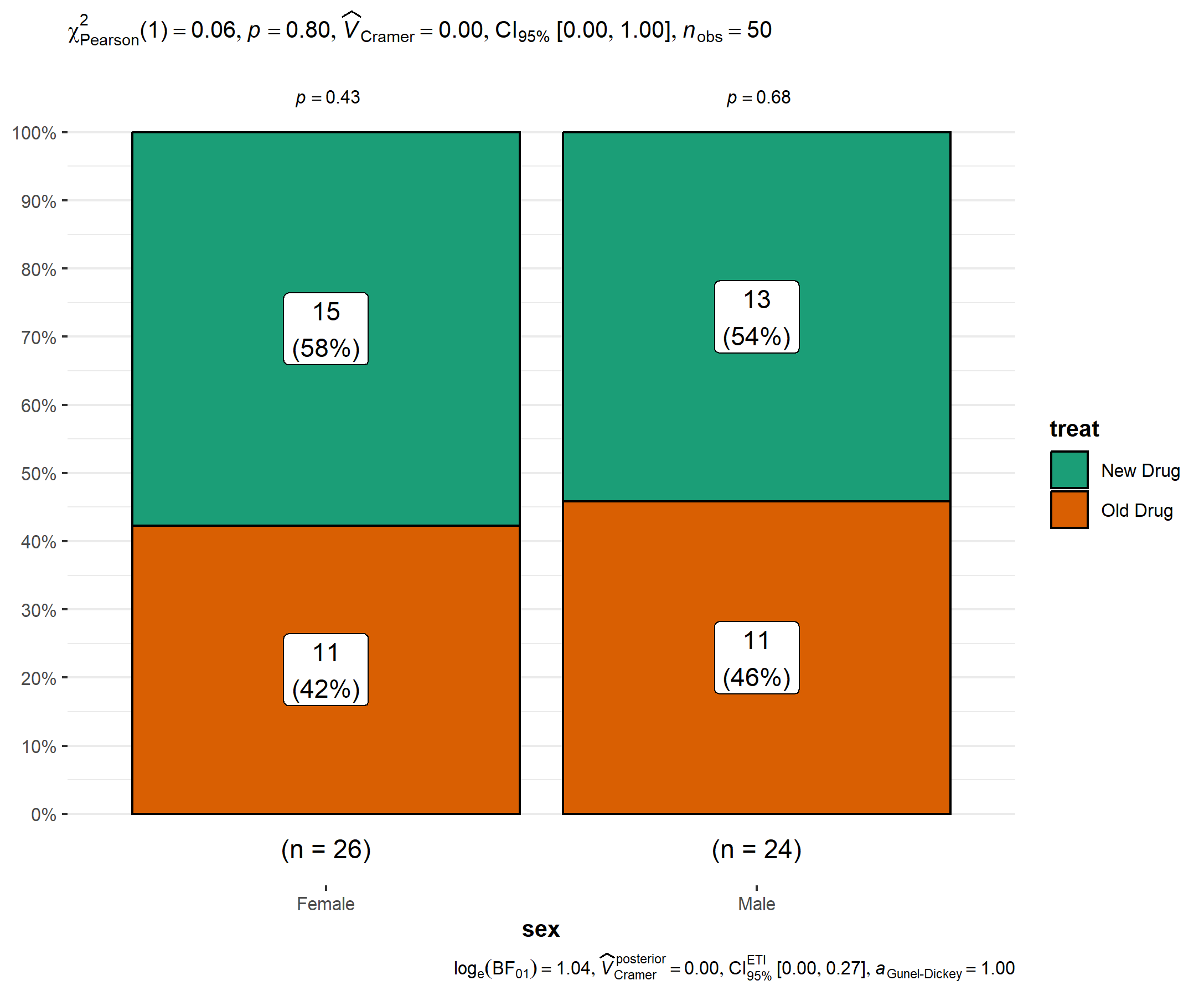 Old Drug, N = 22 | New Drug, N = 28 | ||